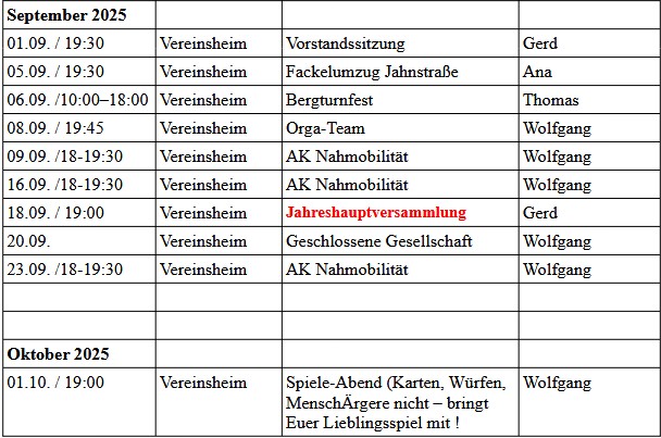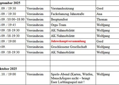 Unsere Jahreshauptversammlung ist in diesem Jahr, am 18.9.2025 ab 19 Uhr, im Vereinsheim.Neben der Ehrung verdienter Mitglieder, wählen wir einen neuen Vorstandes und werden verbesserte Vereinsgremien vorstellen. Einzug Mitgliedsbeitrag 2025 Den Mitgliedbeitrag 2025...